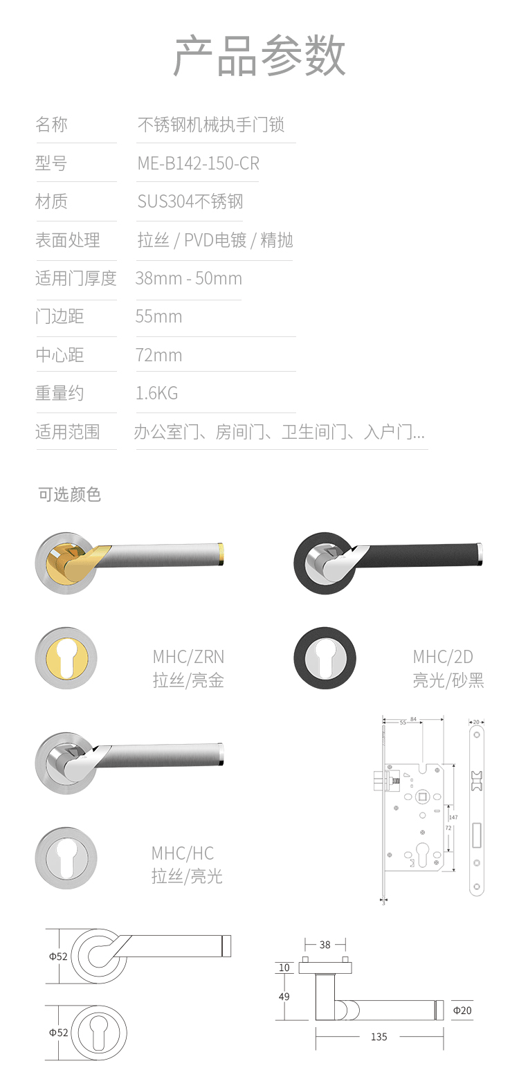 • 產(chǎn)品顏色:拉絲/亮光 MHC/HC、亮光/砂黑 HC/2D、亮金/拉絲 ZRN/MHC